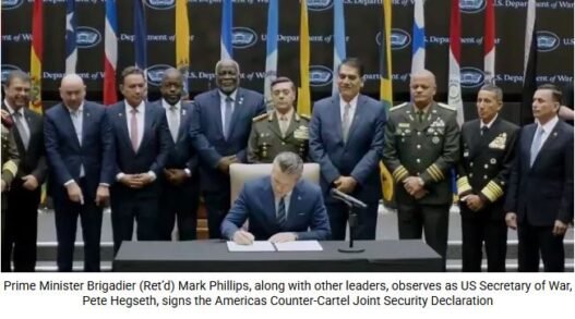 ” The declaration–a commitment shared among all signatories–prioritises expanding multilateral and bilateral cooperation to enhance security in the Americas; cooperating to address border security, countering narco-trafficking, and securing critical infrastructure; advancing peace through strength; and working together to combat narco-terrorism in our shared hemisphere.