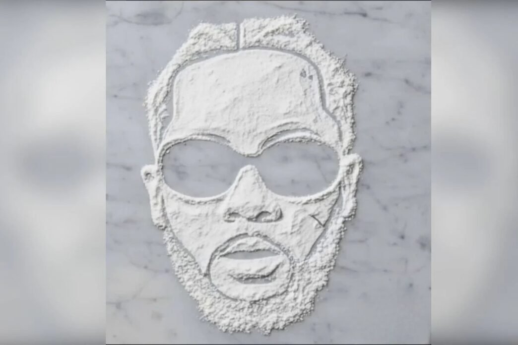 The album features tracks such as “Stuff a Goyard” and “Powder White Piano,” paired with moody purple-blue cover art that sets the visual tone for what’s to come.