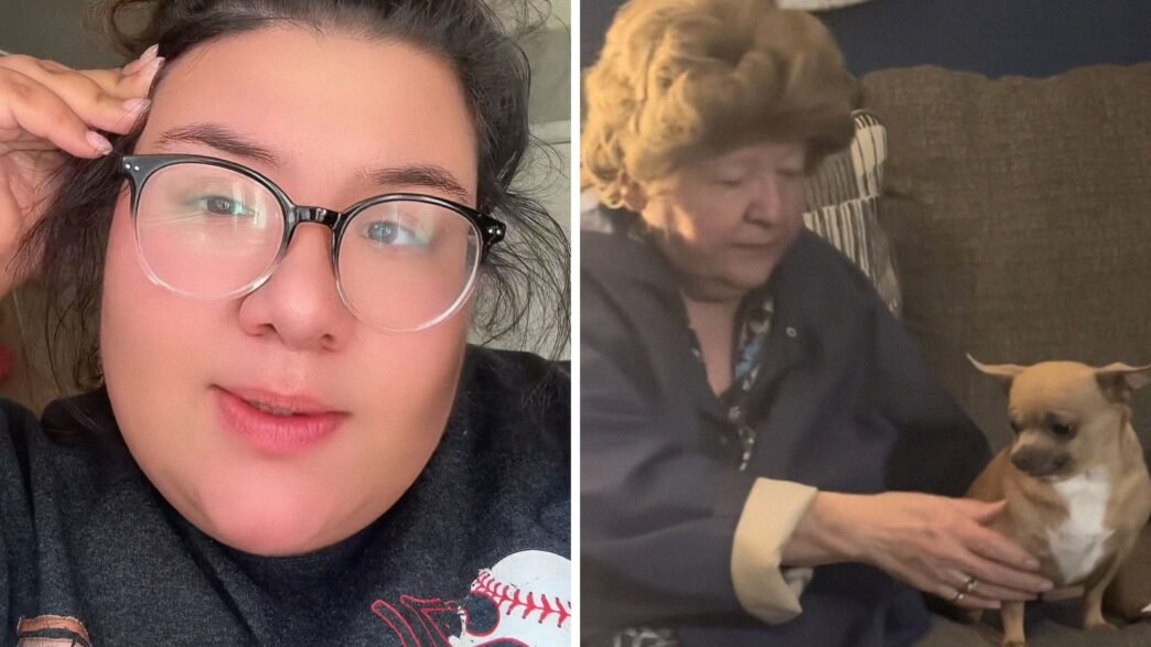 “My grandma has dementia and forgets my dad’s dog hates to be petted,” says the text overlay on Jackalyn Joans’ (@jackalynn.joans) video. The video shows Rico, Joans’ dad’s chihuahua, sitting next to Joans’ grandma. Grandma is petting Rico’s chest while Rico makes a strange face.